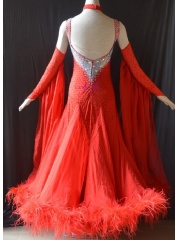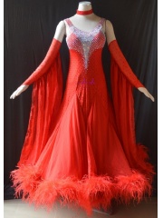 KAKA DANCE B1443,Red Ostrich feather Ballroom Standard Dance Dress,Waltz Dance Competition Dress,Women,Girl,Ballroom